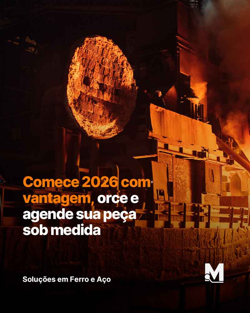 Peças sob medida em ferro e aço até 1.500 kg, com controle de processo de ponta a ponta.
